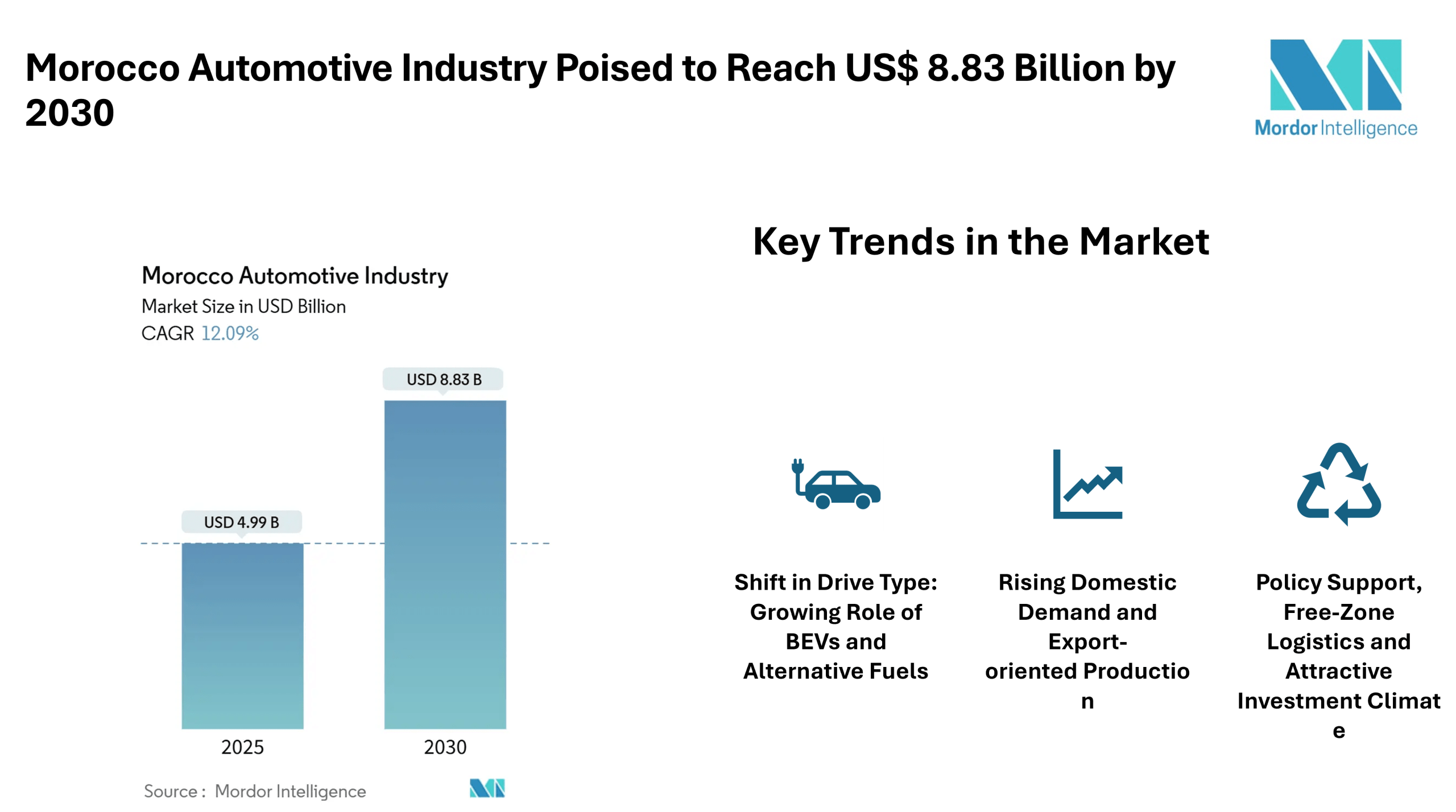 Home Press Releases Morocco Automotive Industry Poised to Reach US$ 8.83 Billion by 2030 , Strong Growth Driven by Passenger Vehicles, EV Momentum and Export-oriented Manufacturing – Mordor Intelligence
